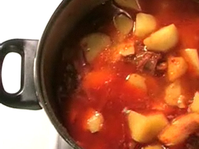 Рецепт итальнской кухни.Состав:картофель — 6 штук;перцы — 2 штуки;лук — 1 штука;чеснок — 2 зубчика;чоризо, перец, соль, масло. Язык: Русский